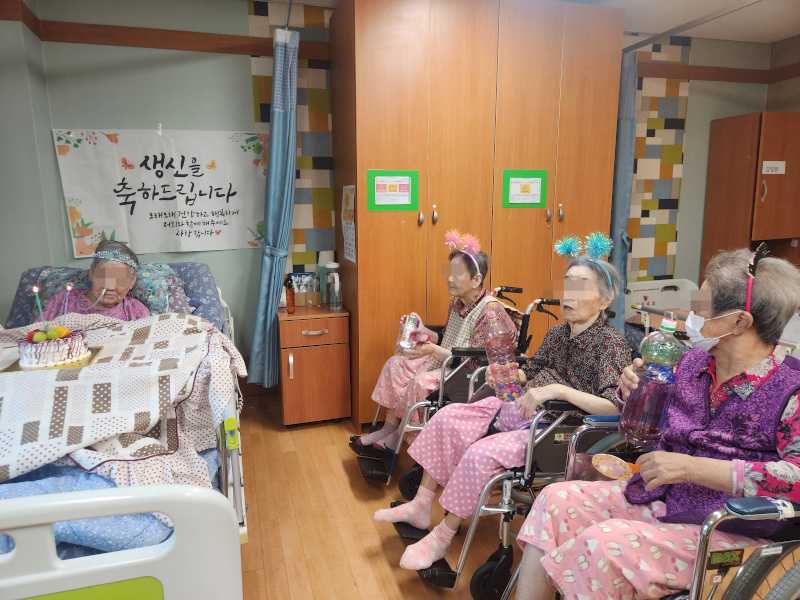 각방 어르신과 요양보호사님들과 함께 축하하는 시간을 가졌습니다.